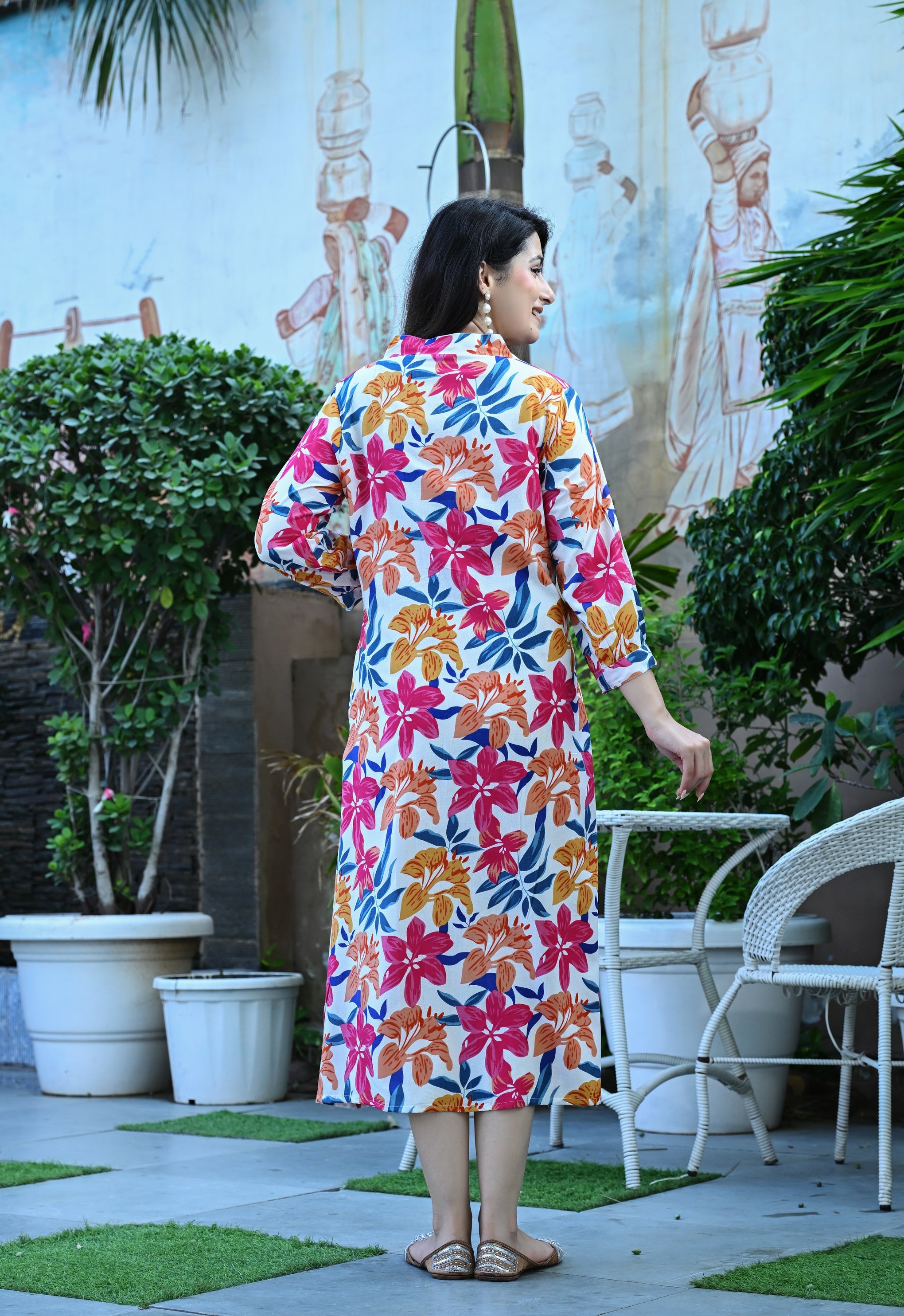Casual & Comfortable Multicolored Printed Dress for Women with Pocket