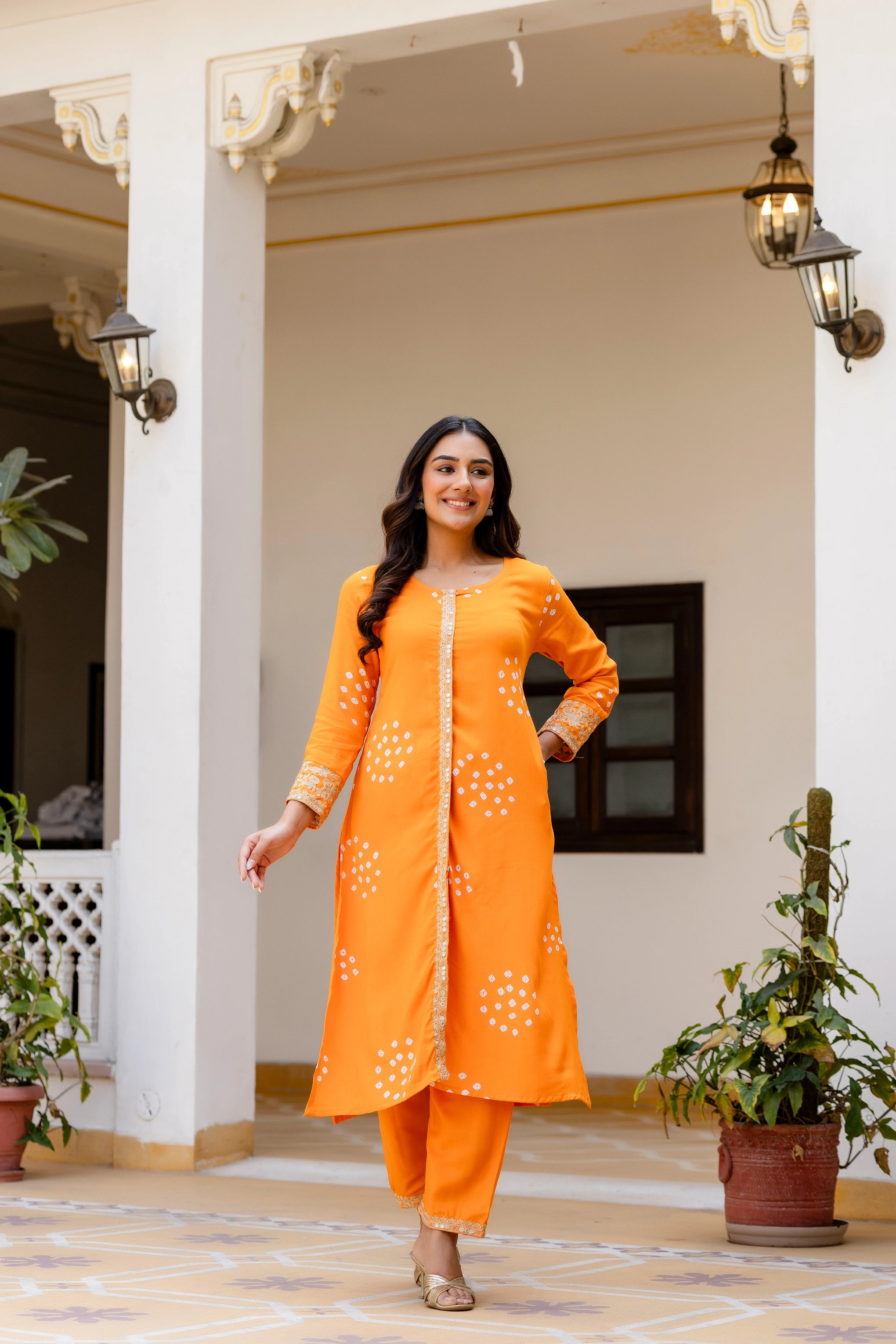 Elevate your everyday look with this classic embroidered orange co-ord set for women. Made from breathable viscose rayon, it features delicate embroidery, a relaxed fit, and effortless comfort—ideal for daily wear and casual occasions.